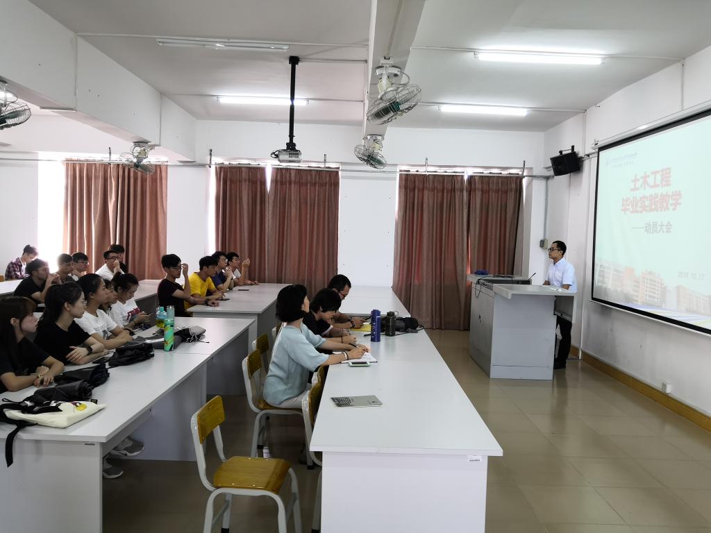 10月17日下午,太阳成集团tyc41183在建工机电楼A幢501召开2016级土木工程本科创新班毕业实践教学工作动员大会,太阳成集团tyc41183吴承霞经理、建筑工程教研室主任李建华、副主任李霞、骨干教师吴俊桦、李红远等五位指导教师和2016级土木工程本科创新班38名员工参加了本次动员大会。动员大会第一个议程是吴承霞经理作毕业实践教学工作动员,第二个议程是李建华老师作毕业实践教学工作安排和布置,会议由李建华主任主持。2016级土木工程本科创新班员工是太阳成集团tyc41183与东莞理工公司城市公司城市与环境公司的“2+2”项目培养的首批本科层次员工,本次毕业实践教学工作由公司和城市与环境公司共10位教师参与指导。