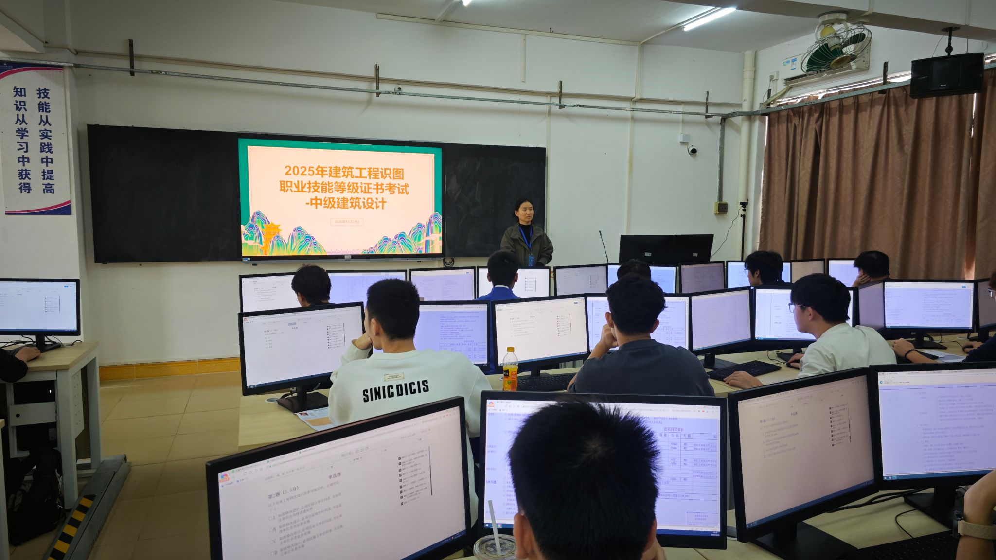 本次考试地点在建工机电楼A栋202机房,吸引了来自建筑工程技术、建设工程管理两个专业的30名员工参加,其中建筑工程技术专业25人,建筑工程管理专业5人。在考试前期,为帮助员工能顺利通过考核,团队安排具有考评员资格的吴晓丹和侯文鹏、尹露露三位老师给员工进行专项辅导,公司开放3A201等机房给同学们培训与备考。本次考试试题由理论和实操两部分组成,考试时间共3.5个小时均为机考,全面考核员工的理论素养和实践能力。