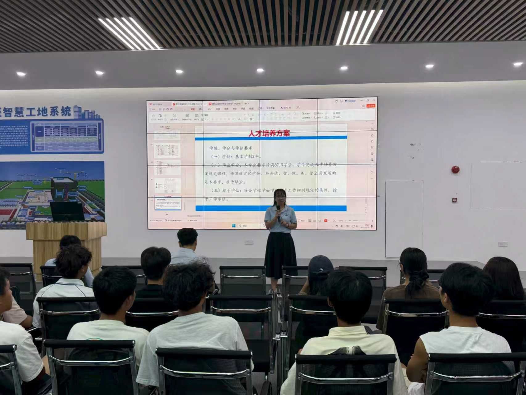 活动伊始,夏俊杰副主任介绍了建筑工程行业未来发展趋势,分析了岗位挑战与机遇,同时也依托专业人才培养方案,详细解读了专科阶段的核心课程、团队团队、技能竞赛、实践教学、毕业要求等专业情况,协助新生更快更准确地认知建筑工程技术专业,为他们未来三年学好专业技能保驾护航。