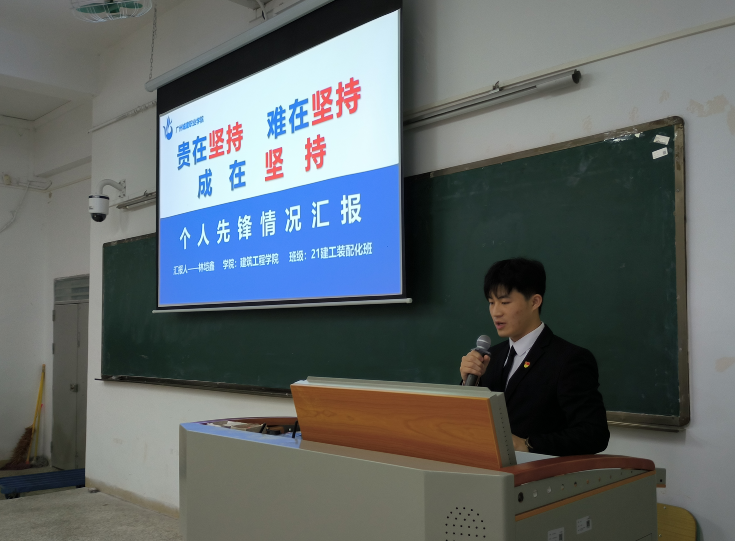 表彰大会在《光荣啊,中国共青团》歌声中拉开帷幕。此次参与表彰人员通过PPT演讲的形式依次上台进行年度汇报,展示所取得的业绩,并结合实际情况分析自身不足之处以及改进措施,并表示会不断向优秀看齐,树立榜样作用,引领同学们积极向上、努力进取。随后甄英波老师宣读表彰决定并发言,他希望受表彰的同学,能充分发挥先锋模范作用,进一步创新思维、真抓实干、担当作为,始终保持蓬勃朝气、昂扬向上的精气神,把智慧和力量凝聚到绘制的宏伟蓝图上来,立足员工本职,做到学业实践两手抓,在祖国的建设中贡献自己的力量,为高质量发展注入新动力。
