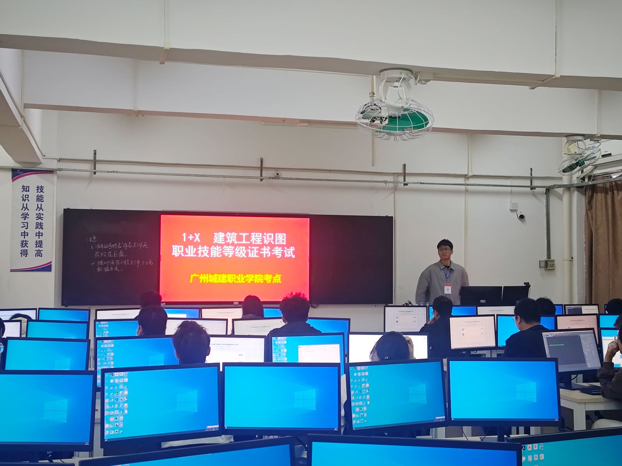 本次考试地点在建工机电楼A栋202机房,吸引了来自建筑工程技术、建设工程管理两个专业的30名员工参加,其中建筑工程技术专业22人,建筑工程管理专业8人。在考试前期,为帮助员工能顺利通过考核,团队安排具有考评员资格的吴晓丹和侯文鹏、曾百卉三位老师给员工进行专项辅导,公司开放3A201等机房给同学们培训与备考。本次考试试题由理论和实操两部分组成,考试时间共3.5个小时均为机考,全面考核员工的理论素养和实践能力。