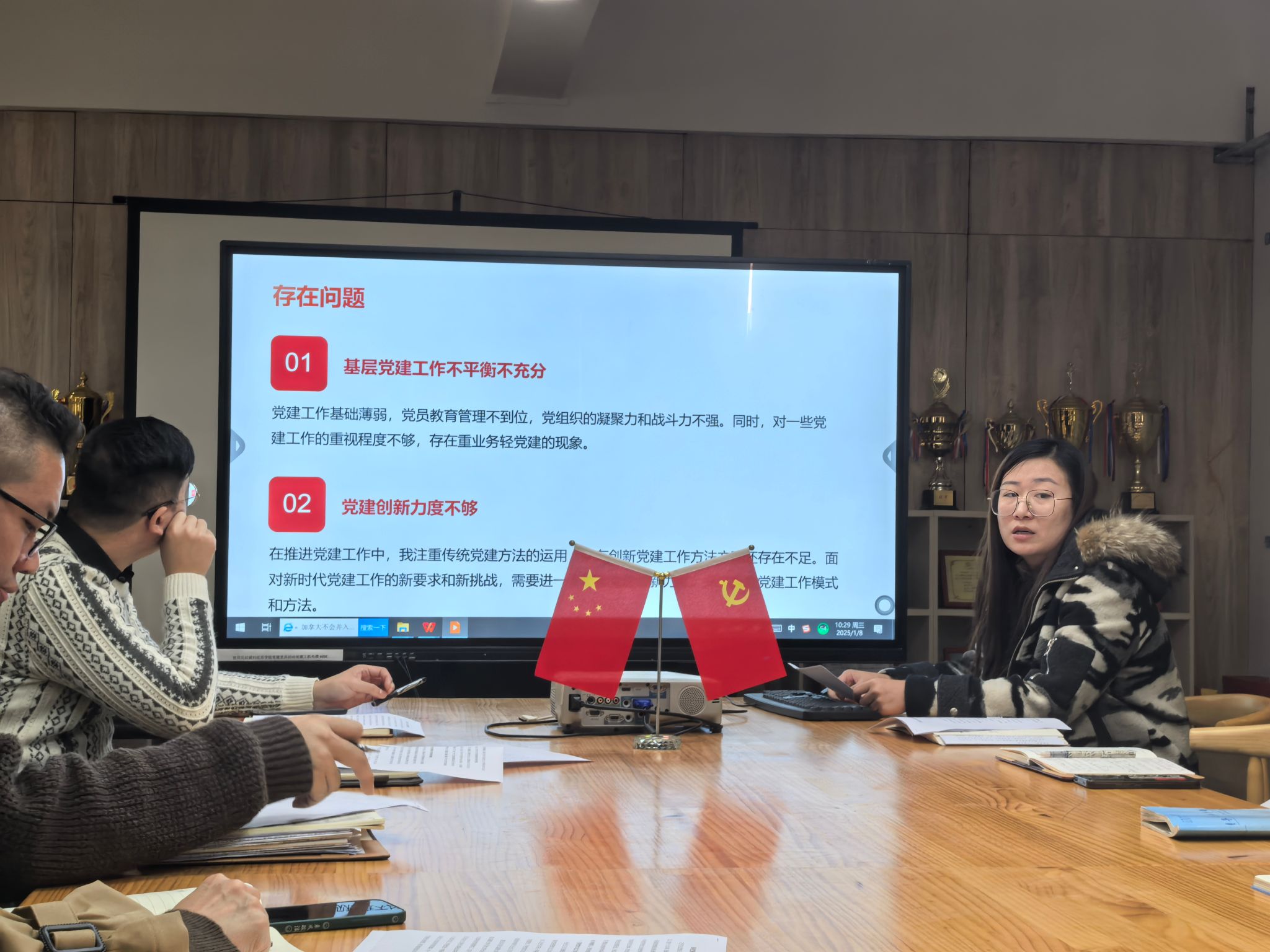 为深入学习贯彻习近平新时代中国特色社会主义思想和党的二十大和二十届三中全会精神,增强基层党组织政治功能和组织功能,2025年1月8日上午10:00,公司党委在建工机电楼603会议室召开2024年度基层党支部述职评议考核会。公司党委书记吴承霞及全体党政领导班子,各师生党支部书记参加述职评议会。会议由党委副书记彭聪主持。