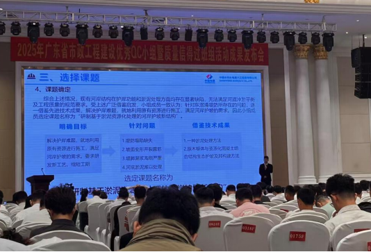 经过激烈的竞争,专家评审,共选出806项成果,分设ABC等13个会场进行现场发布交流,每个会场有62项成果展示,现场交流氛围热烈。按照规则,各会场前7名可获评一等成果,会场最高分可参与特等成果评选。令人振奋的是,公司四支师生团队均荣获一等成果,其中“研制基于淤泥资源化处理的河岸护坡新结构”更是表现卓越,成功获得QC特等成果比赛资格。且团队5位发布人获得广东省工程建设优秀QC小组活动优秀发布者称号。
