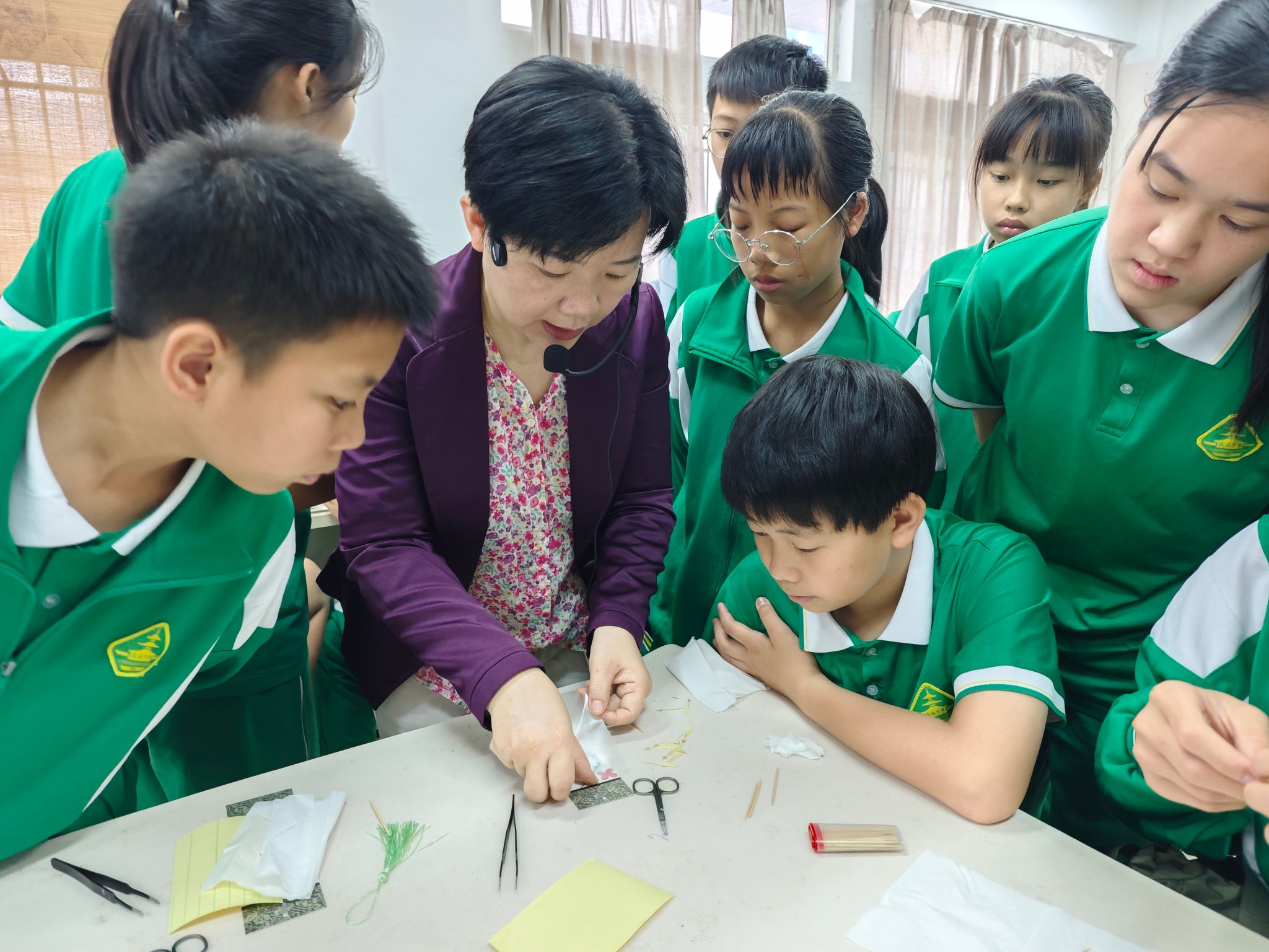 石昭华老师为流中学子示范压花书签的装裱技巧