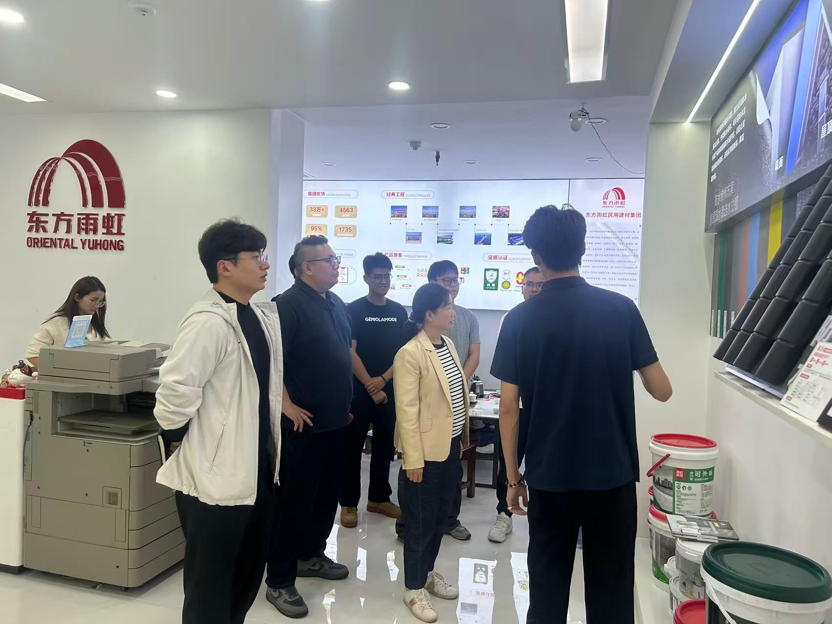 在翁庭峰的陪同下,吴承霞一行参观了东方雨虹防水消费者体验中心的材料展示区、工艺实训区与技术研发平台,详细了解企业在新型防水材料研发、标准化施工工艺及质量管理体系方面的创新成果与实际应用。随后,双方围绕“订单班”合作开展座谈,就课程共建、实训基地建设、团队共享及员工就业保障等关键环节进行深入交流。