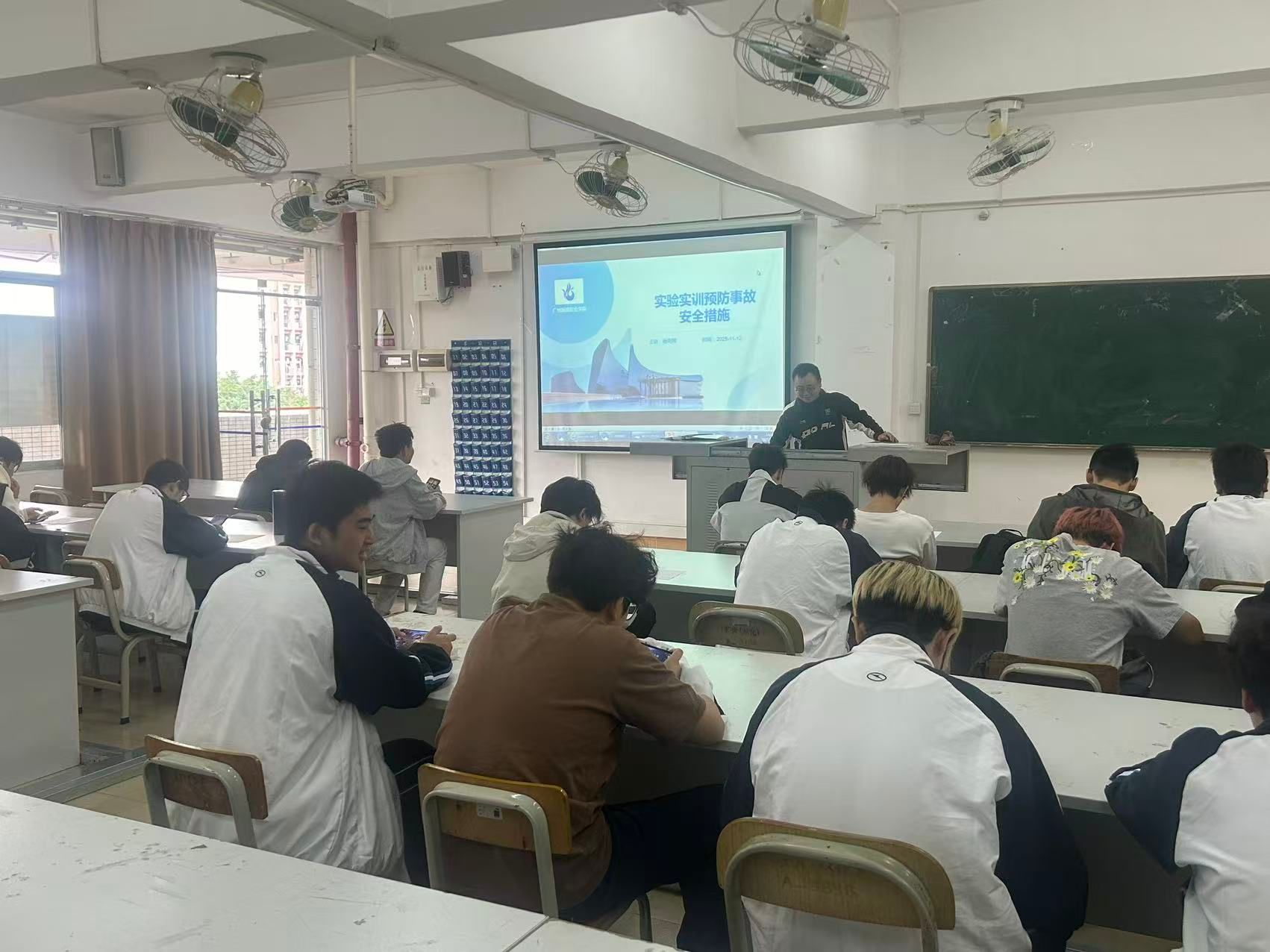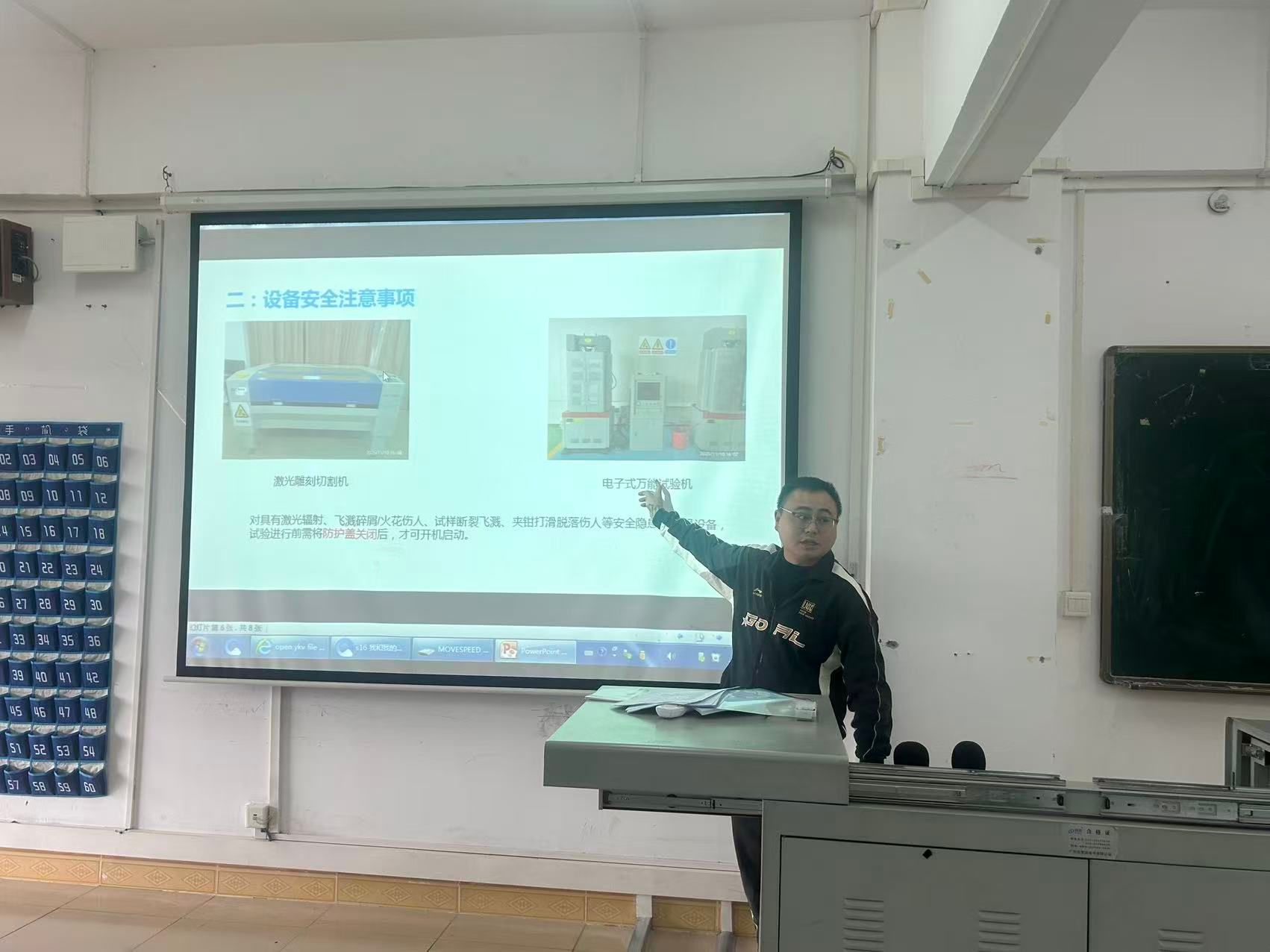 培训开始,谢奇辉对实训室内常见的危险源进行了系统性的梳理和介绍。他结合建筑工程的专业特点,重点讲解了诸如切割机、电子式万能机、搅拌机等大型设备可能引发的机械伤害、触电、粉尘、噪音等风险。谢奇辉深刻剖析了违规操作可能带来的严重后果,让同学们对“安全无小事”有了最直观和清醒的认识。