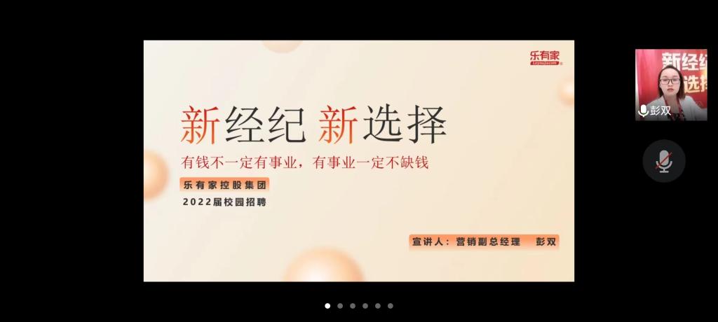 9月28日下午3点,乐有家控股集团2022届校园招聘城建校区线上宣讲会在腾讯会议上顺利举行,乐有家控股集团营销副总经理彭双、公司2023届毕业生辅导员和60余名毕业生参与了本次会议。