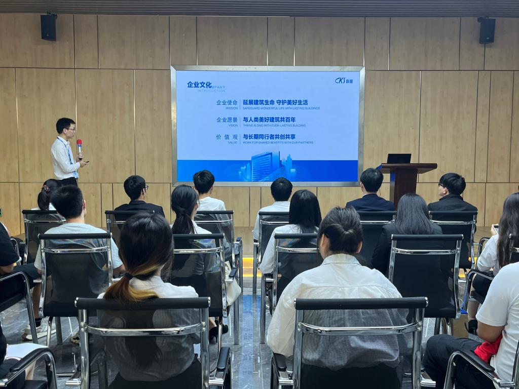 在宣讲会中,陈天龙经理为毕业生们就如何正确的完成角色转变及注意事项、如何成功的从校园走向职场和职场法则等问题提出宝贵意见。同时,陈天龙经理也介绍了延展建筑生命,守护美好生活的企业使命以及与人类美好建筑共百年的企业愿望和与长期同行者共创共享的价值观。随后向大家详细的讲解了本次招聘岗位的具体内容。最后在活跃的互动答疑环节中结束了本次宣讲会。