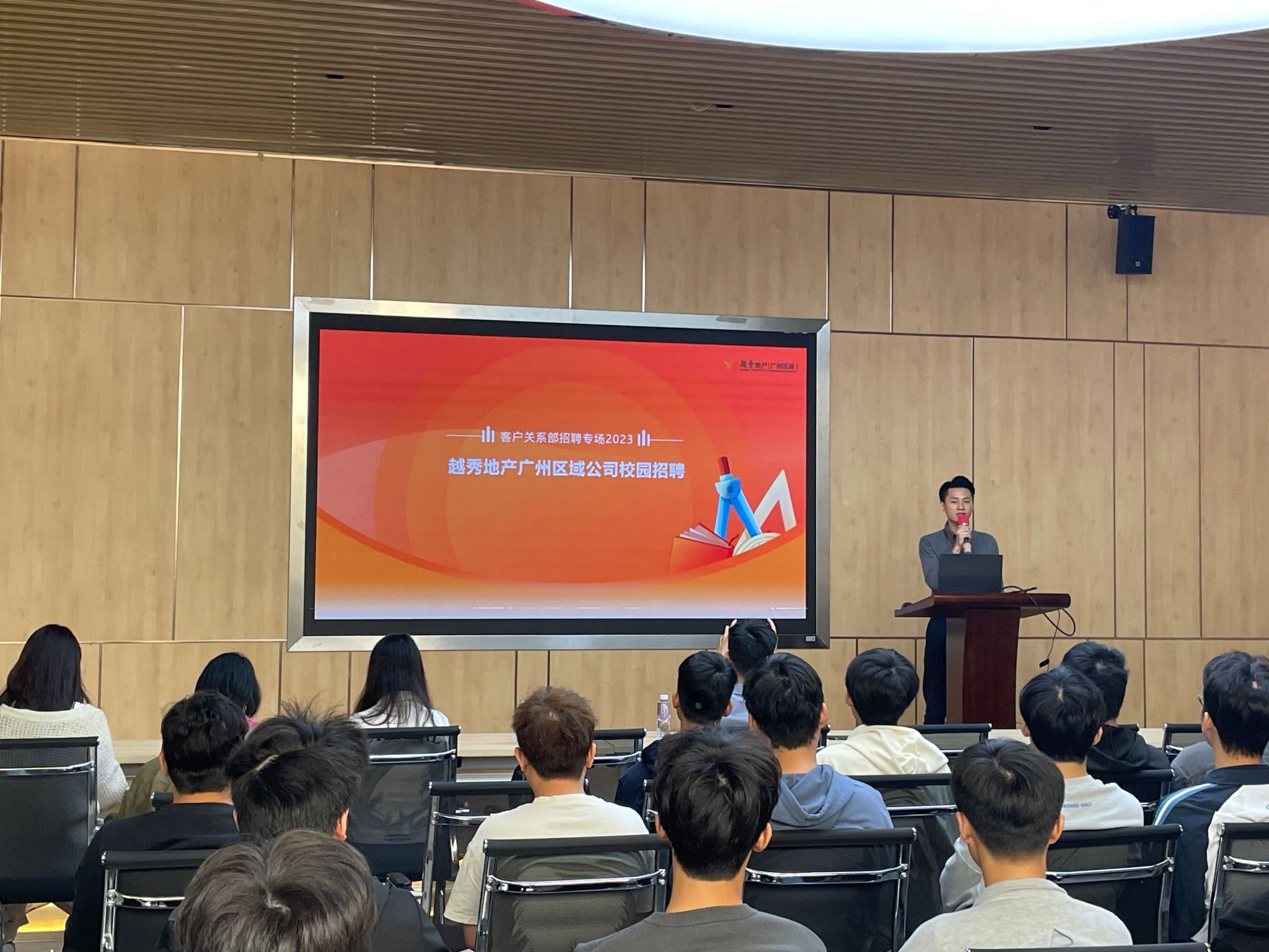 为积极落实推进2024届毕业生就业工作,提供更多优质岗位。2023年11月28日10:00公司在建工机电楼3B-204E报告厅开展了毕业生就业宣讲会,公司党委副书记、副经理王柳杨、越秀地产广州区域公司项目经理陈文豪、人事经理梁雨翩、毕业生辅导员以及毕业生参加宣讲会。