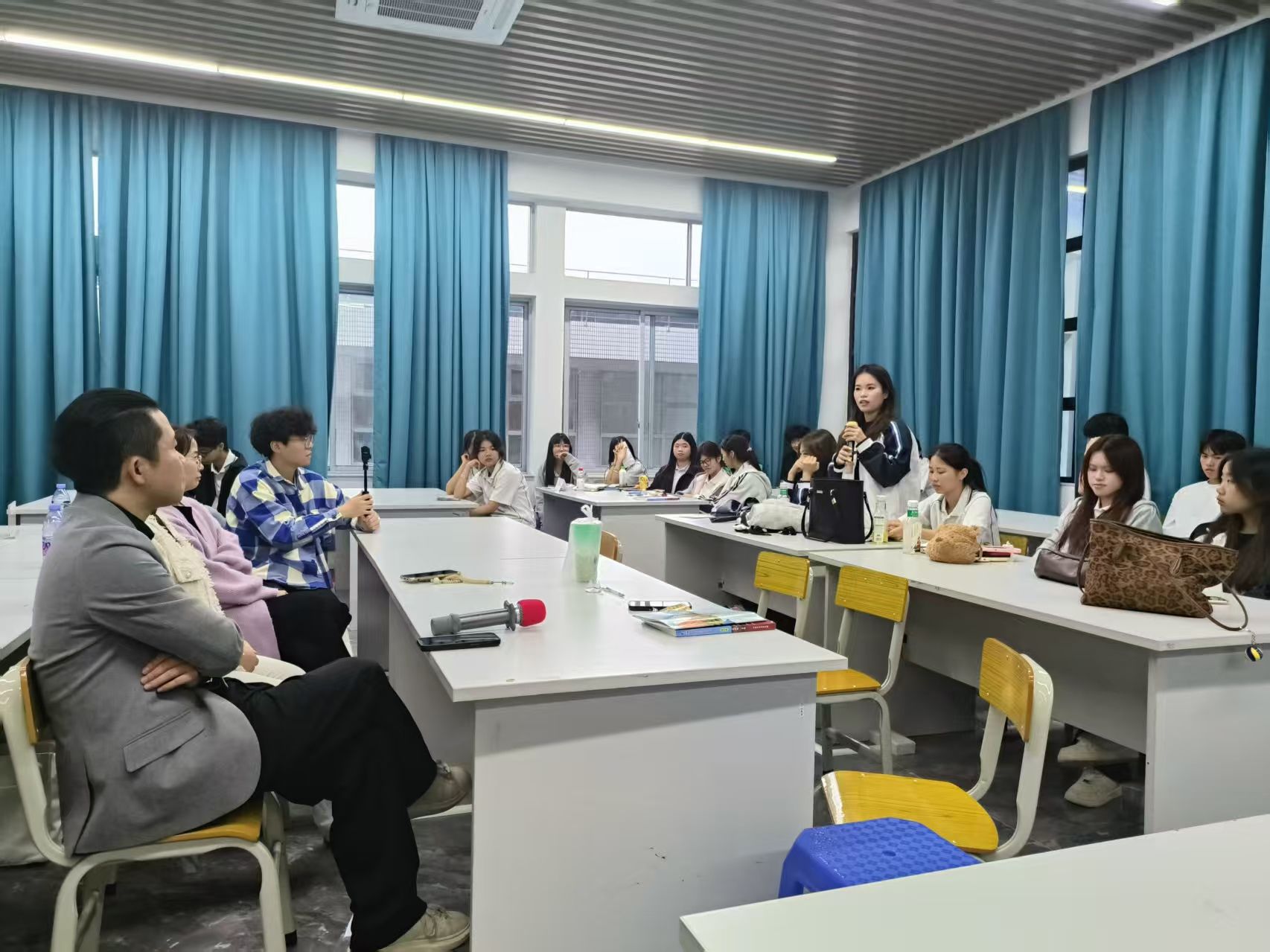 在互动环节中,郑艺坛以及其团队成员分别对同学们提出的专业能力培养、求职重点、职业选择等问题进行了细致解答。他们强调不必因起点岗位不尽理想而焦虑,而应注重在实践中学习、在探索中沉淀,为长远发展筑牢基础。同学们积极提问,现场气氛热烈活跃,大家都十分珍惜这难得的与优秀员工近距离交流的机会。分享会临近尾声时,石昭华老师在总结发言中再次感谢员工们的真诚分享。他鼓励同学们以员工为榜样,在大学期间努力学习专业知识,积极参与实践活动,不断提升自身综合素质。同时,他也希望同学们保持积极乐观的心态,勇于面对未来职业道路上的挑战。