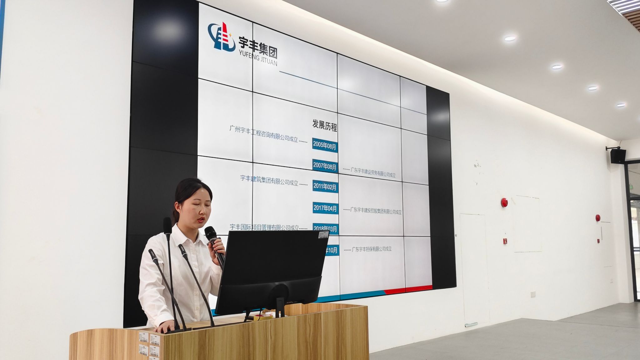 随后,严美凤进行企业宣讲。她介绍道,广东宇丰建投控股集团有限公司是一家现代化、综合性的建筑产业服务企业集团,注册资本1.28亿元,旗下拥有7家子公司和20多个分公司及办事处,致力于成为国内知名的“大建筑产业链综合服务商”。严美凤就企业文化、培训体系、日常团建等内容做了详细说明,帮助同学们全面了解企业环境和人才政策。