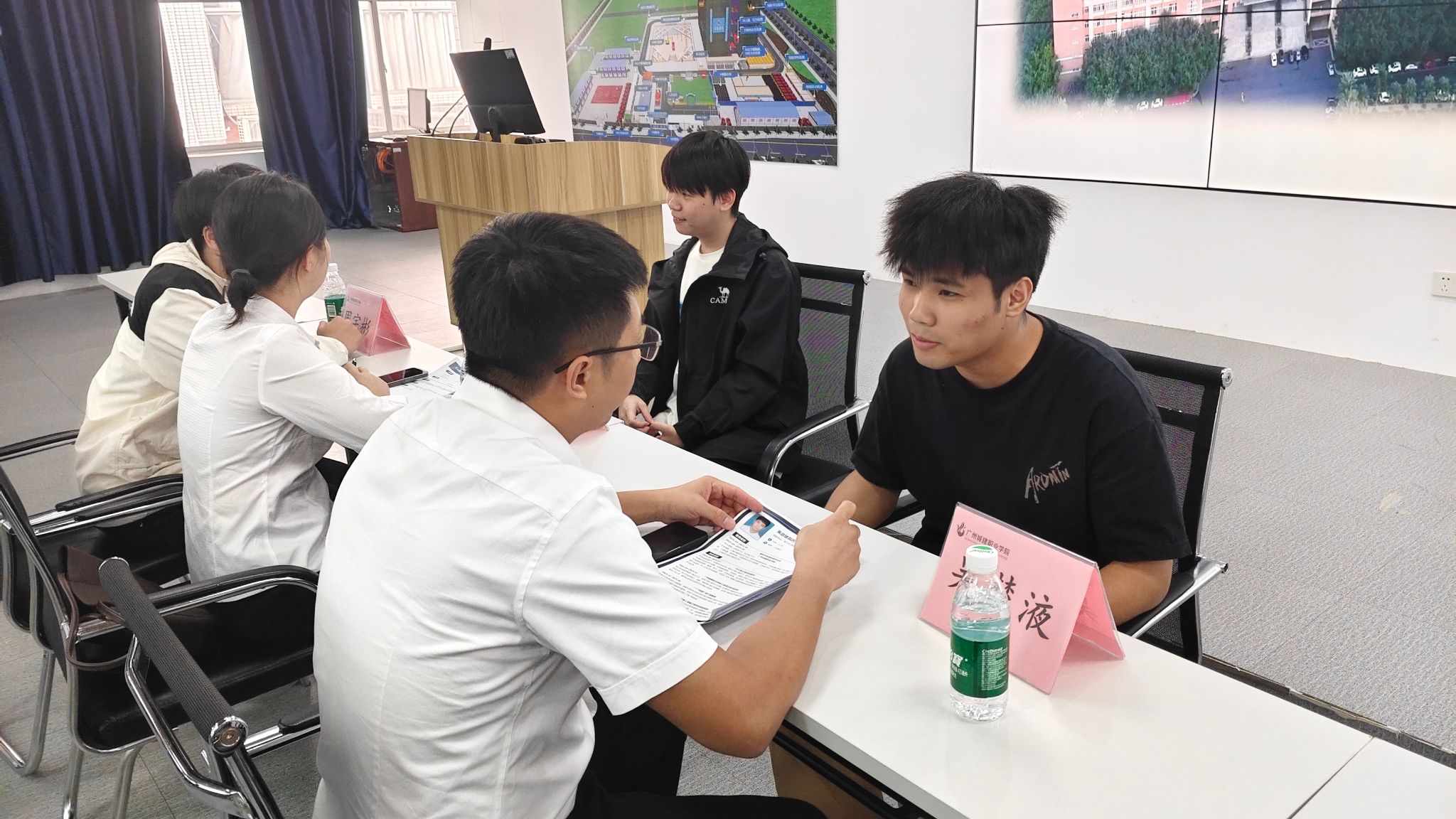 在互动交流环节,同学们围绕岗位需求、薪资待遇、职业发展等问题踊跃提问,与企业代表进行了深入沟通。企业代表们耐心解答,为同学们消除了疑虑,帮助大家对公司的招聘岗位有了更清晰的认识。宣讲会结束后,企业现场组织了专场招聘面试。同学们积极递交简历,与企业代表进行面对面交流,展现出良好的专业素养与求职热情。