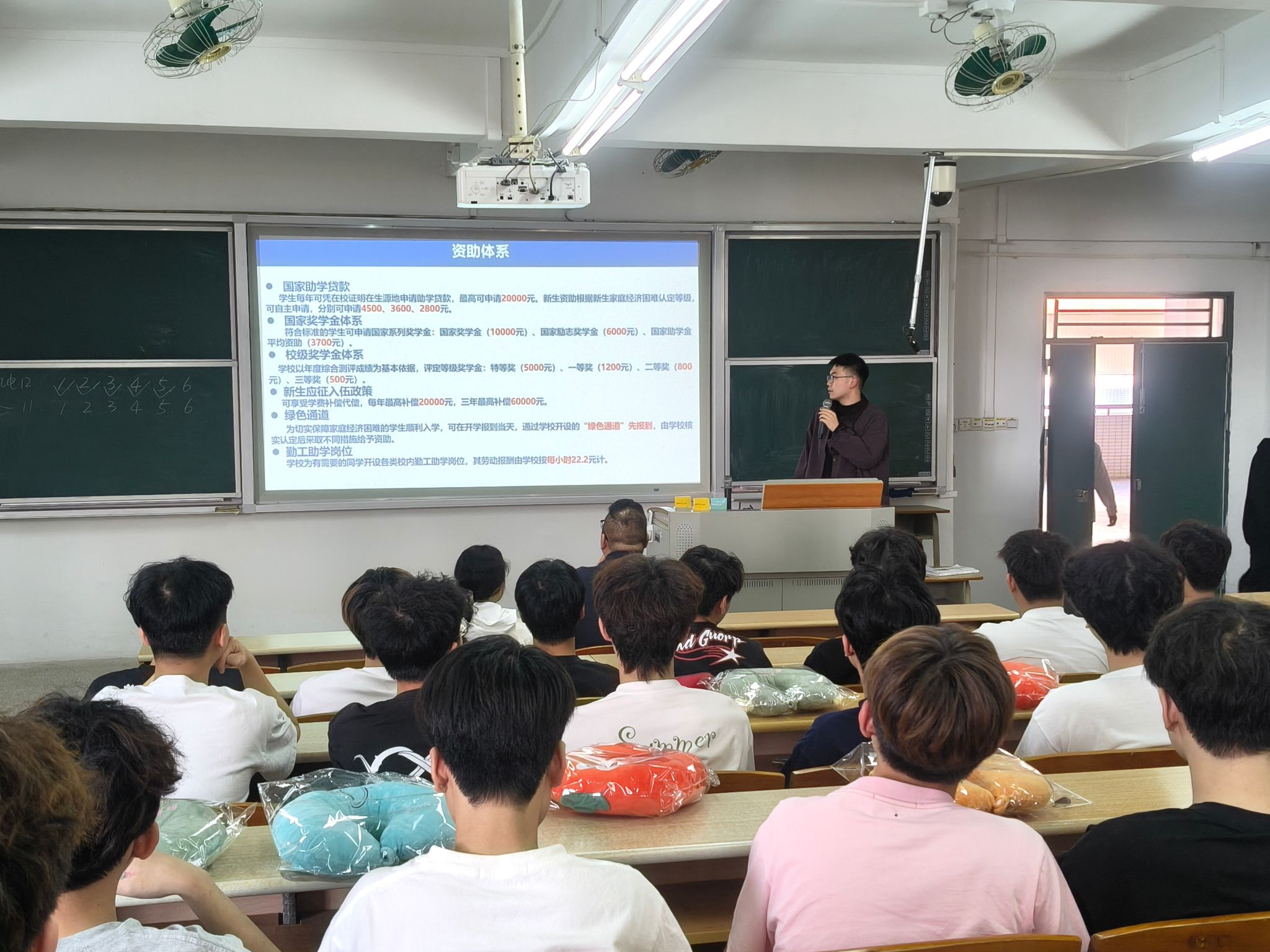 活动伊始,陈一鹏为准新生们带来详尽的“大学启航指南”。他详细介绍了公司的“奖助贷”政策体系与申请条件,同时,解读了老员工征兵政策,解读国家战略、入伍条件及发展前景;最后围绕校园学习与生活,涵盖课程特点、校园设施、员工组织及安全须知等向同学们一一介绍。