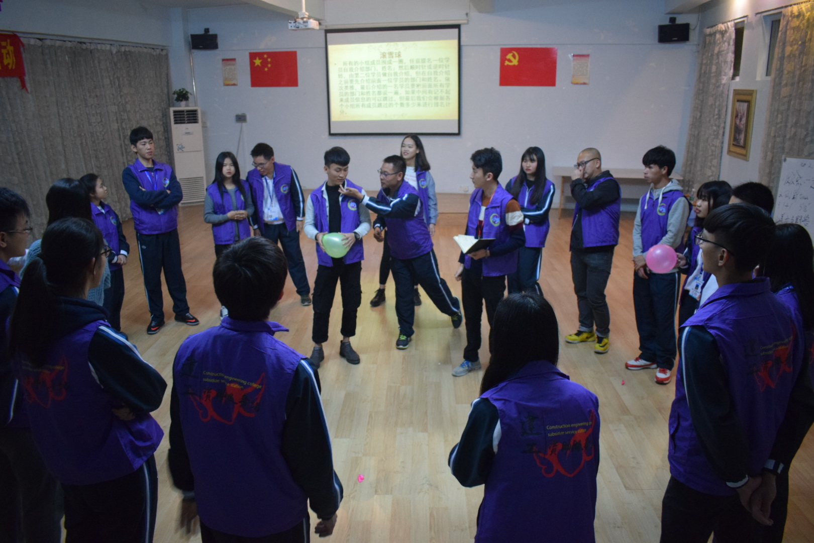 活动伊始,建工资助服务站梁春花老师对本学期工作做详细的概述,发言中表达了对现任全体干事们努力工作的感谢之情,同时对干事们新学期工作提出目标和要求。吴松娟指导老师则希望干事们能够一如既往地认真完成工作,不轻言放弃,在服务他人的同时提升自己的素养与能力。动员大会结束后,团体辅导活动正式开始。通过一系列游戏的拓展,使活动现场迅速升温,项目不仅考验了团队与团队之间的沟通合作,也拉近了各部门干事之间的距离,为日后工作顺利开展建立坚实基础。