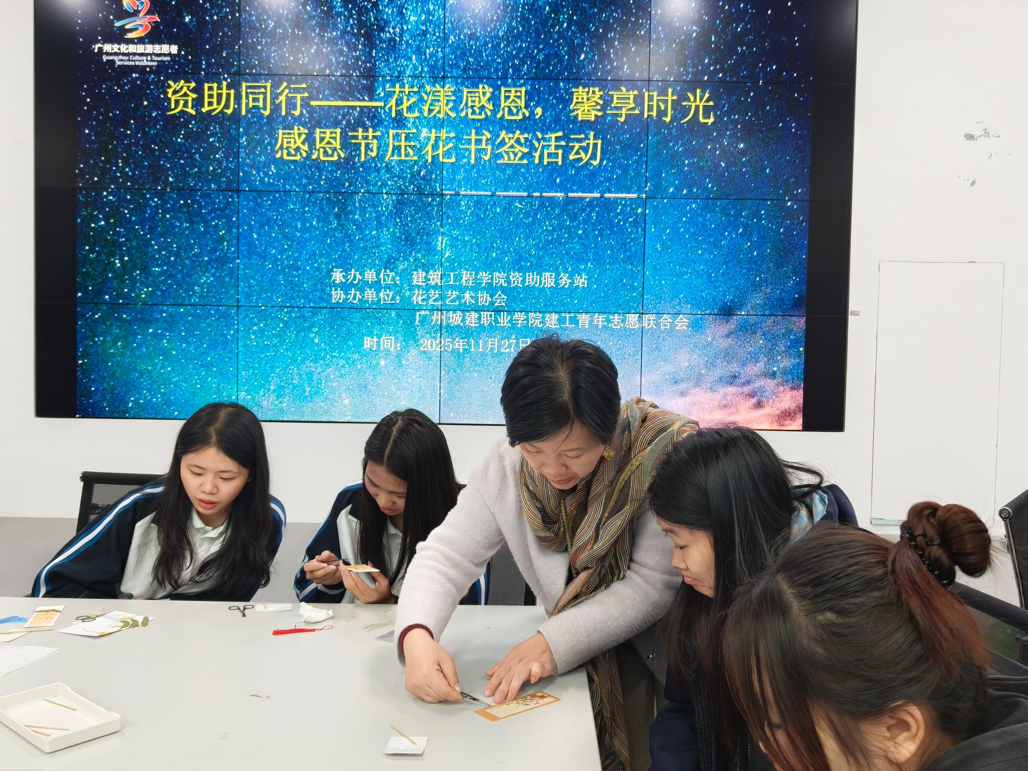 为深化资助育人工作,培养员工的感恩意识,11月27日晚上7:20分,由太阳成集团tyc41183资助服务站联合花艺艺术协会、建工青年志愿者联合会在建工机电楼B栋204G教室举办2025年“资助同行——花漾感恩,馨享时光”感恩压花书签活动,活动吸引了近80余名师生参加。