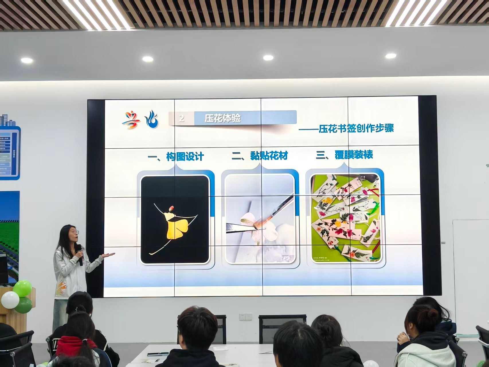 活动伊始,花艺艺术协会会长黄杨顺同学为在场的师生详细讲解了压花艺术的魅力,演示了压花书签的制作技巧。在实践环节,参与者在协会成员与资助服务站工作人员的协助下,发挥创意,精心挑选干花素材,巧妙构图,把秋日韵味与感恩心意凝于书签方寸之间。