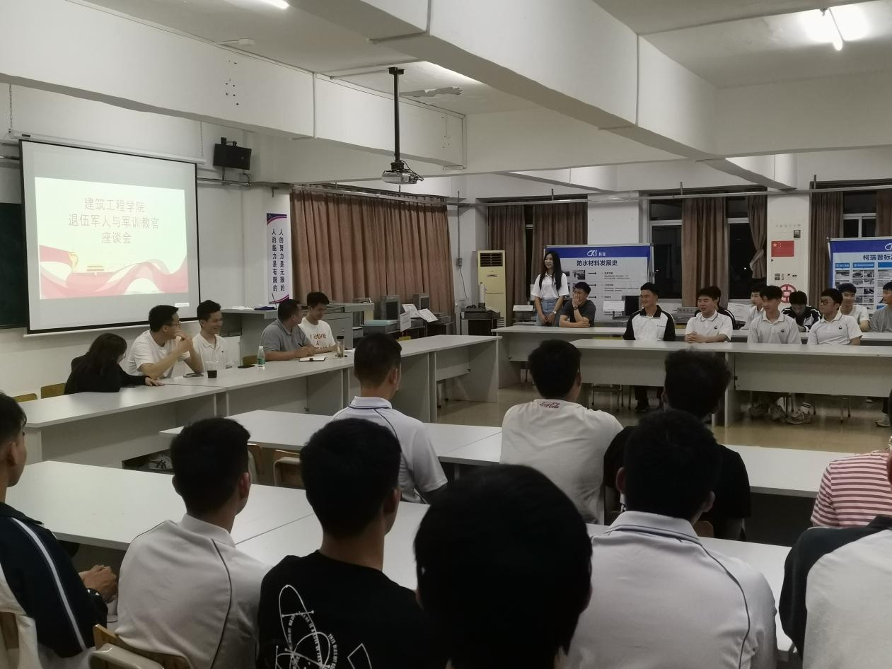 太阳成集团tyc41183学工办于3月30日19:30在建工机电楼503课室召开了退伍军人与军训教官座谈会。公司党委书记张双,辅导员赖伟杰、洪娆钰、陈健辉,2019级、2020级退伍军人以及报名参加军训教官的共计74名员工参与会议,座谈会由征兵专员胡国兴主持。