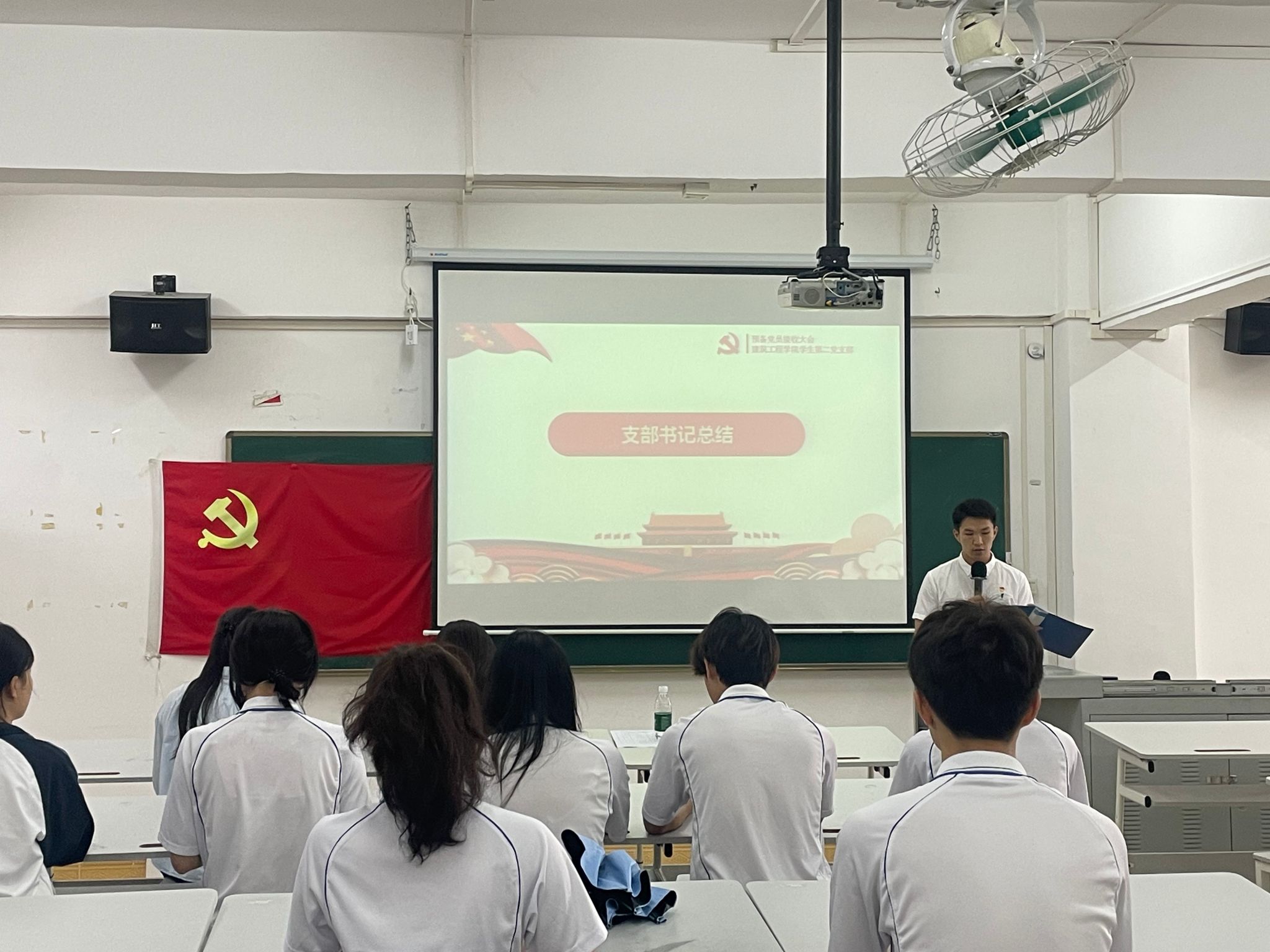 最后支部书记胡国兴作总结讲话,对新接收的预备党员表示祝贺,并提出不忘初心,以党员标准严格要求自己,不断加强理论学习,用思想武装头脑,同时要发挥先锋模范作用,在学业、实践和服务中彰显党员担当。