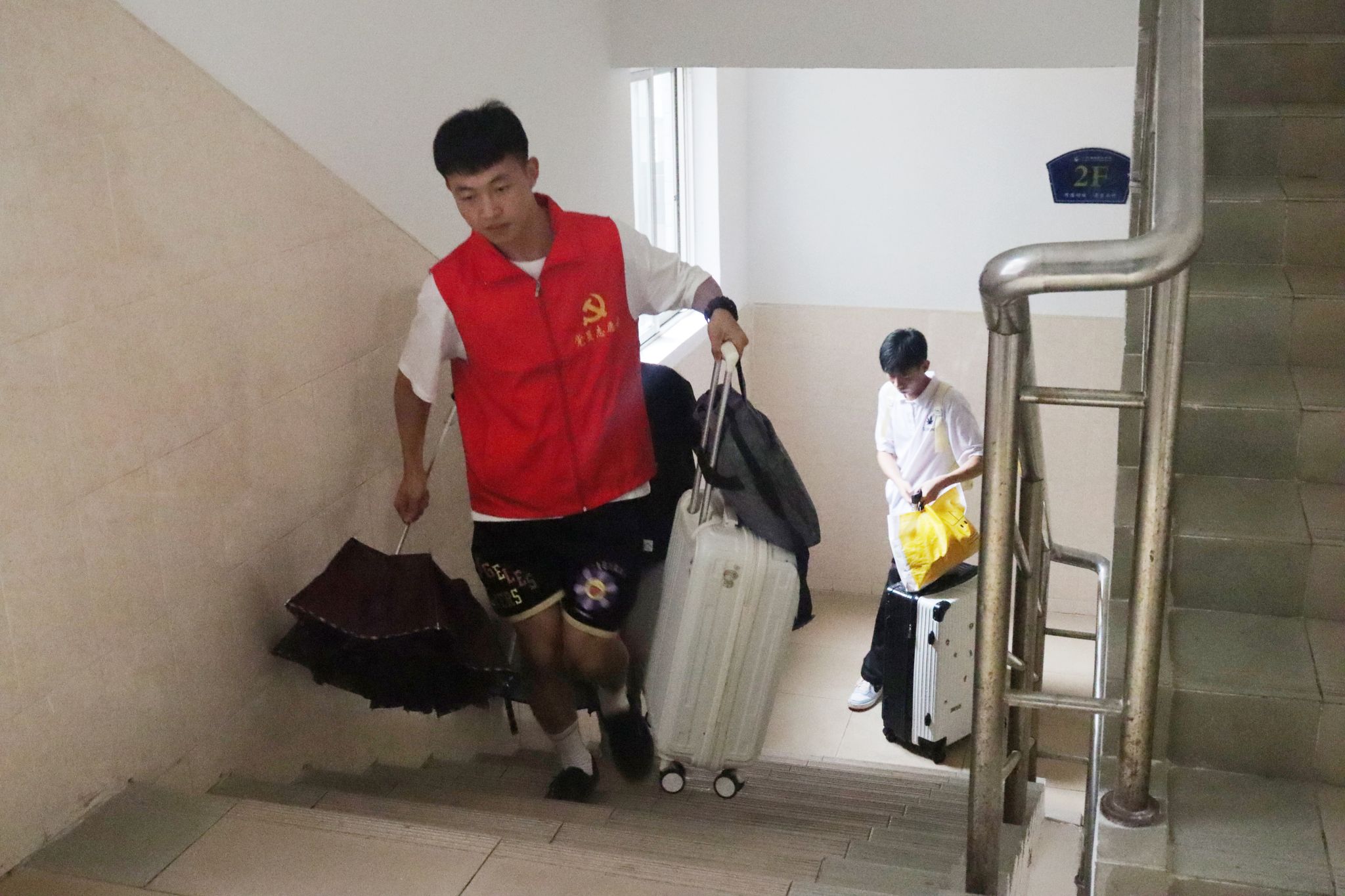 迎新当日,员工党员们穿着党员志愿服准时到达17栋社区党员先锋岗,引导新生入住宿舍、介绍宿舍的管理条例、帮运行李以及协助解决突发事件。党员志愿者穿梭在17栋宿舍楼中,切切实实的做到了哪里有需要,哪里就有员工党员们的身影,激发社区党建活力,为一站式社区建设奠定坚实基础。
