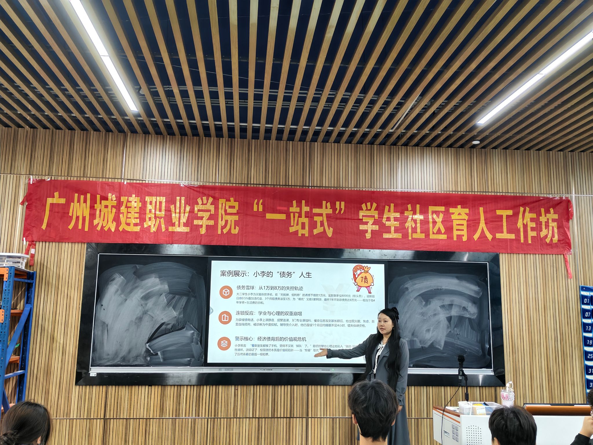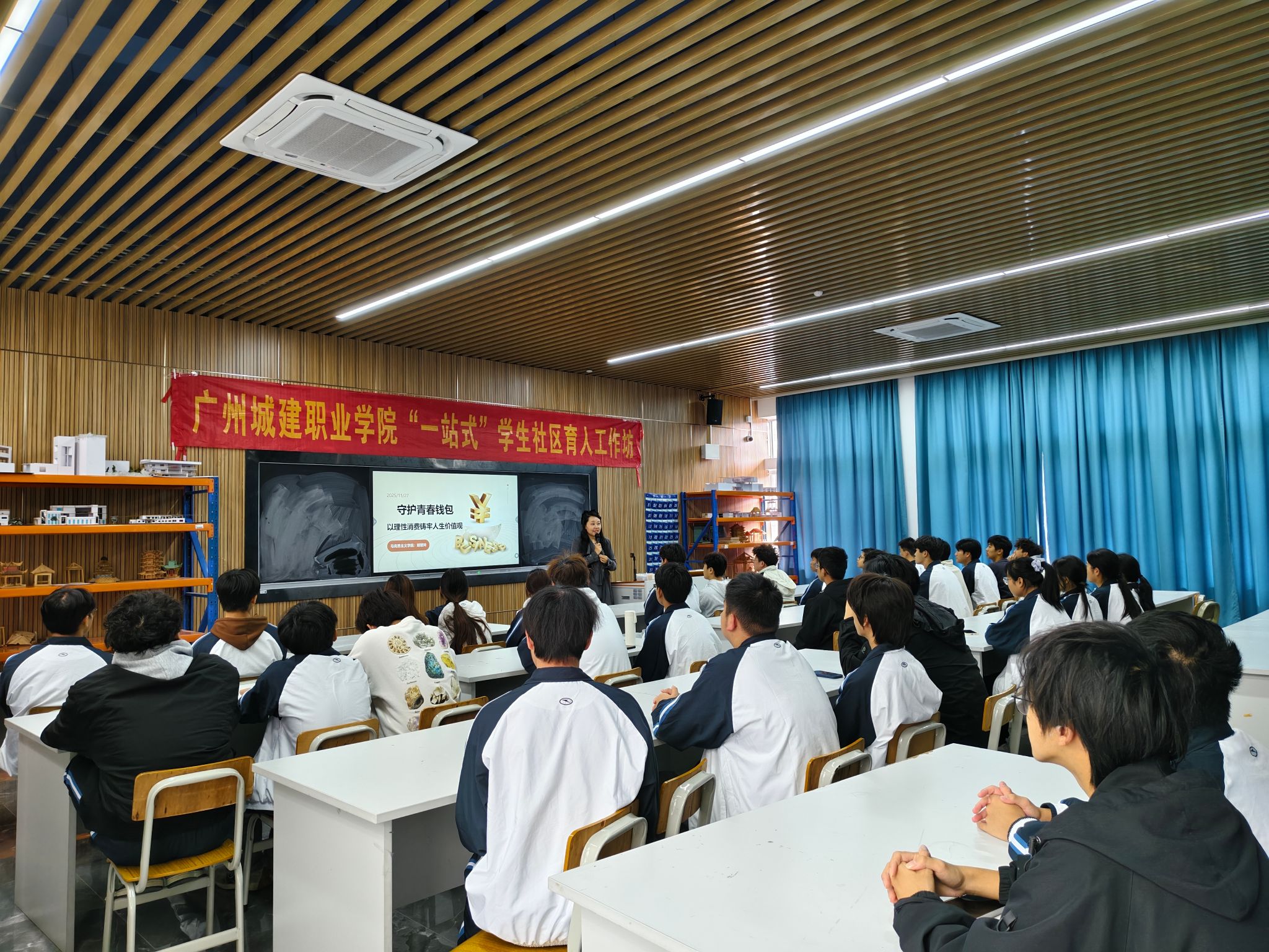 2025年11月27日下午,16栋“一站式”员工社区举办了以“守护青春钱包,以理性消费铸牢人生价值观”为主题的育人工作坊。活动旨在引导员工树立正确消费观,科学规划个人收支,助力青年学子在消费实践中筑牢人生价值观根基。本次工作坊由马克思主义公司胡慧玲老师担任主讲,50名2025级员工积极参与,现场互动热烈、氛围浓厚。